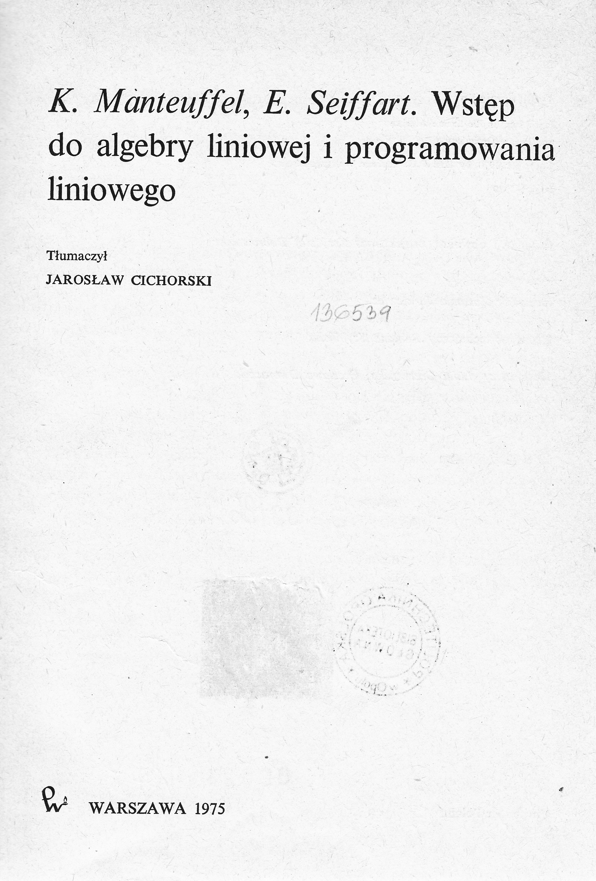 Tyt. oryg.: Einführung in die lineare Algebra und lineare Optimierung