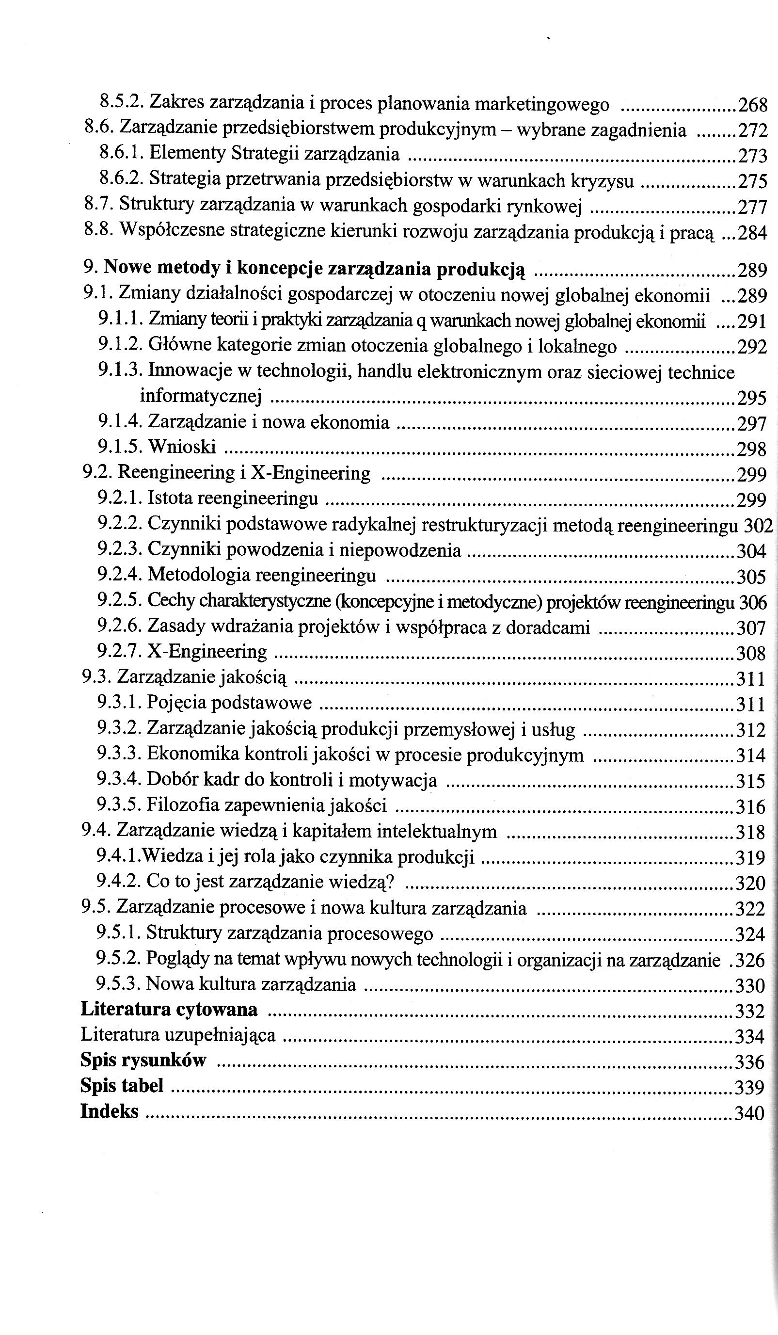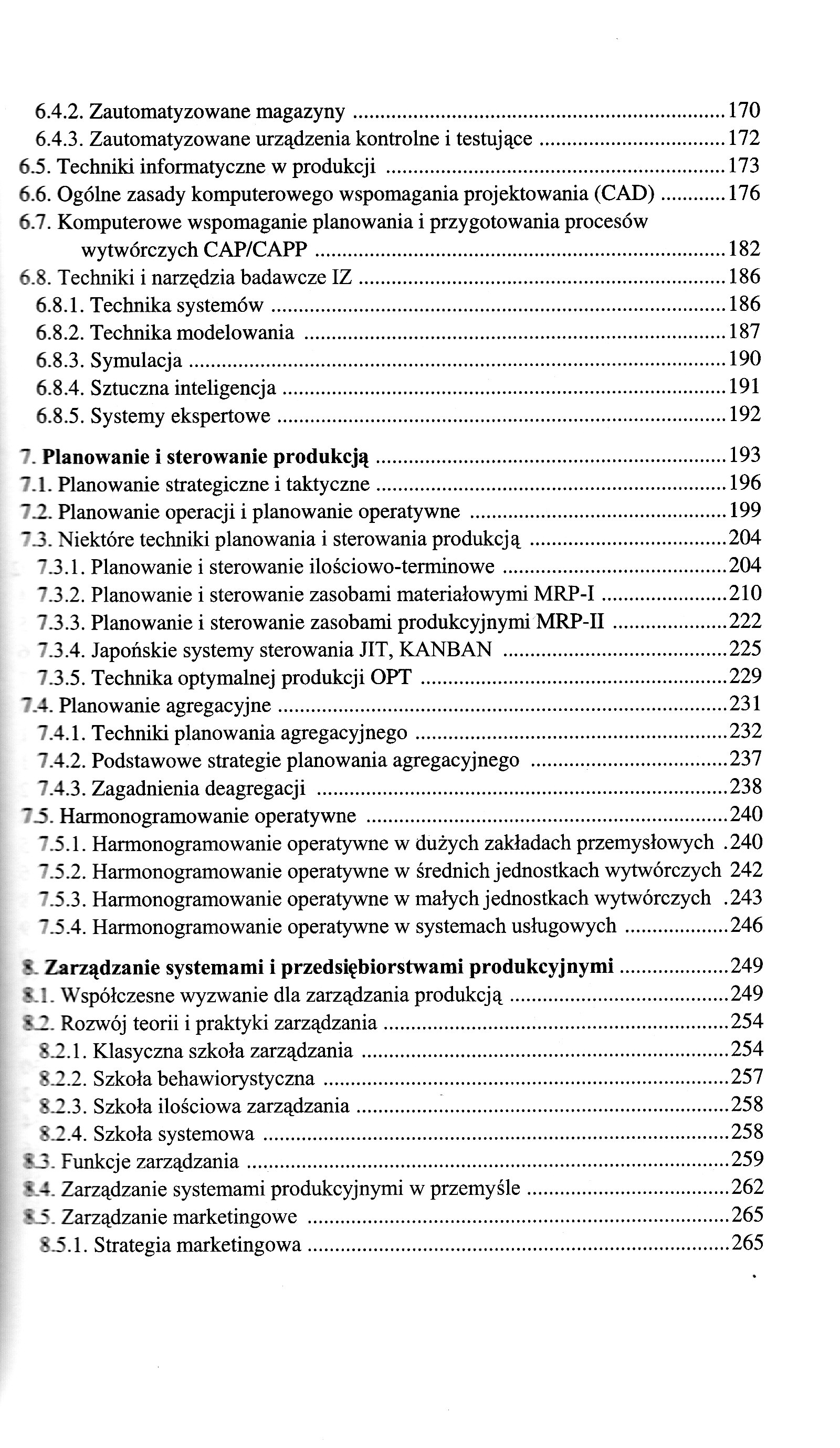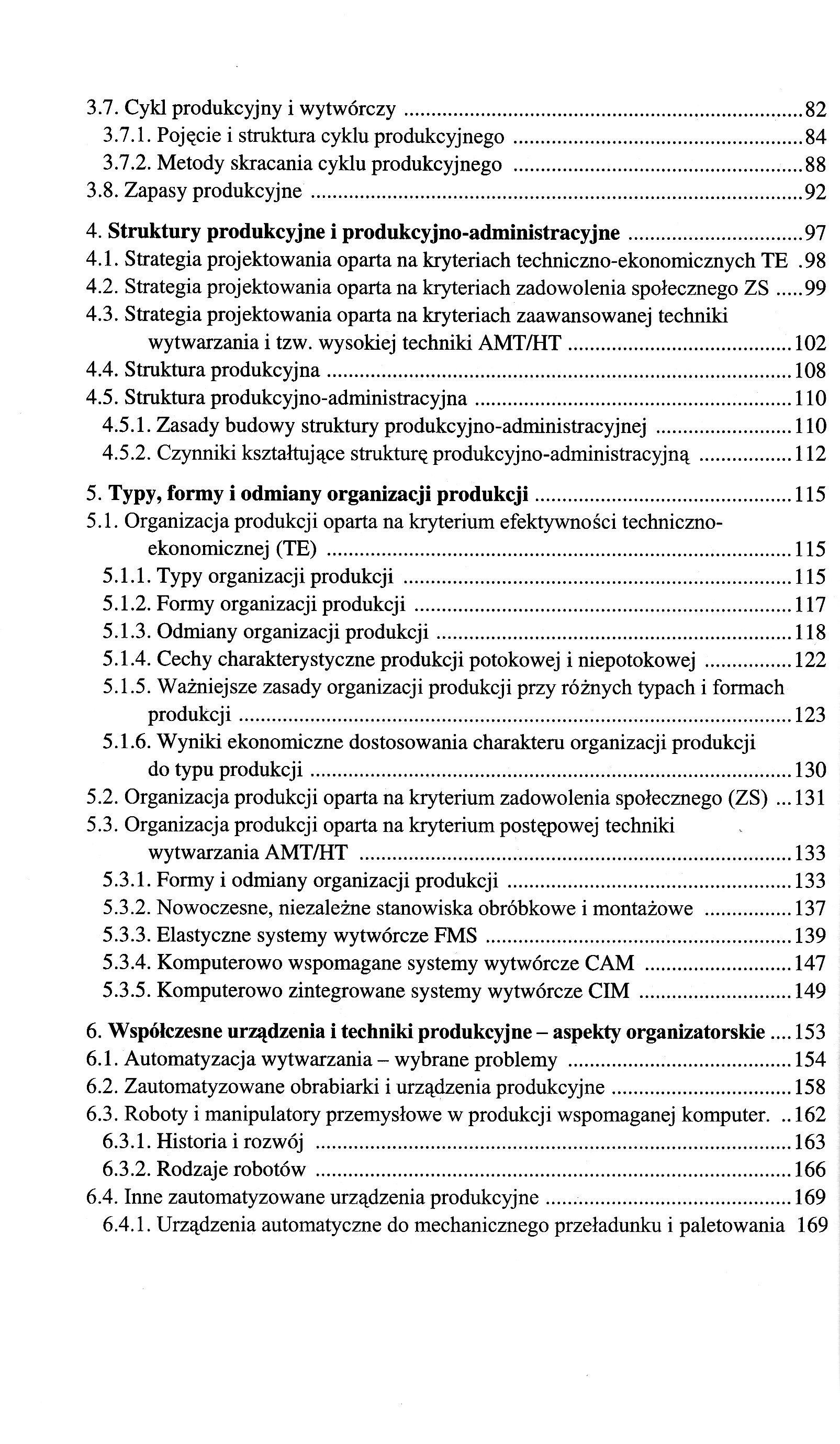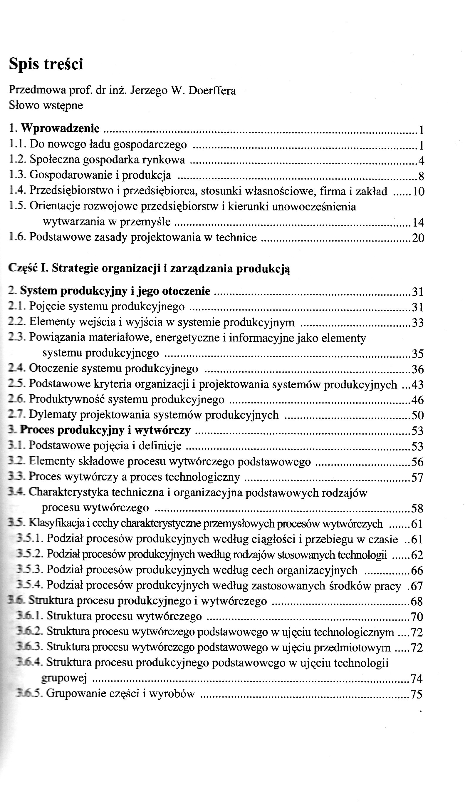 Do nowego ładu gospodarczego Społeczna gospodarka rynkowi Gospodarowanie i produkcja Przedsiębiorstwo i przedsiębiorca, stosunki własnościowe, firma i zakład Orientacje rozwojowe przedsiębiorstw i kierunki unowocześnienia wytwarzania w przemyśle Podstawowe zasady projektowania w technice Strategie organizacji i zarządzania produkcją System produkcyjny i jego otoczenie Pojęcie systemu produkcyjnego Elementy wejścia i wyjścia w systemie produkcyjnym Powiązania materiałowe, energetyczne i informacyjne jako elementy systemu produkcyjnego Otoczenie systemu produkcyjnego Podstawowe kryteria organizacji i projektowania systemów produkcyjnych Produktywność systemu produkcyjnego Dylematy projektowania systemów produkcyjnych Proces produkcyjny i wytwórczy Podstawowe pojęcia i definicje Elementy składowe procesu wytwórczego podstawowego Proces wytwórczy a proces technologiczny Charakterystyka techniczna i organizacyjna podstawowych rodzajów procesu wytwórczego Klasyfikacja i cechy charakterystyczne przemysłowych procesów wytwórczych Podział procesów produkcyjnych według ciągłości i przebiegu w czasie Podział procesów produkcyjnych według rodzajów stosowanych technologii Podział procesów produkcyjnych według cech organizacyjnych Podział procesów produkcyjnych według zastosowanych środków pracy Struktura procesu produkcyjnego i wytwórczego Struktura procesu wytwórczego Struktura procesu wytwórczego podstawowego w ujęciu technologicznym Struktura procesu wytwórczego podstawowego w ujęciu przedmiotowym Struktura procesu produkcyjnego podstawowego w ujęciu technologii grupowej Grupowanie części i wyrobów Cykl produkcyjny i wytwórczy Pojęcie i struktura cyklu produkcyjnego Metody skracania cyklu produkcyjnego Zapasy produkcyjne Struktury produkcyjne i produkcyjno-administracyjne Strategia projektowania oparta na kryteriach techniczno-ekonomicznych TE Strategia projektowania oparta na kryteriach zadowolenia społecznego ZS Strategia projektowania oparta na kryteriach zaawansowanej techniki wytwarzania i tzw. wysokiej techniki AMT/HT Struktura produkcyjna Struktura produkcyjno-administracyjna Zasady budowy struktury produkcyjno-administracyjnej Czynniki kształtujące strukturę produkcyjno-administracyjna Typy, formy i odmiany organizacji produkcji Organizacja produkcji oparta na kryterium efektywności techniczno-ekonomicznej (TE) Typy organizacji produkcji Formy organizacji produkcji Odmiany organizacji produkcji Cechy charakterystyczne produkcji potokowej i niepotokowej Ważniejsze zasady organizacji produkcji przy różnych typach i formach produkcji Wyniki ekonomiczne dostosowania charakteru organizacji produkcji do typu produkcji Organizacja produkcji oparta na kryterium zadowolenia społecznego (ZS) Organizacja produkcji oparta na kryterium postępowej techniki wytwarzania AMT/HT Formy i odmiany organizacji produkcji Nowoczesne, niezależne stanowiska obróbkowe i montażowe Elastyczne systemy wytwórcze FMS Komputerowo wspomagane systemy wytwórcze CAM Komputerowo zintegrowane systemy wytwórcze CIM Współczesne urządzenia i techniki produkcyjne - aspekty organizatorskie Automatyzacja wytwarzania-wybrane problemy Zautomatyzowane obrabiarki i urządzenia produkcyjne Roboty i manipulatory przemysłowe w produkcji wspomaganej komputer. Historia i rozwój Rodzaje robotów Inne zautomatyzowane urządzenia produkcyjne Urządzenia automatyczne do mechanicznego przeładunku i paletowania Zautomatyzowane magazyny Zautomatyzowane urządzenia kontrolne i testujące Techniki informatyczne w produkcji Ogólne zasady komputerowego wspomagania projektowania (CAD) Komputerowe wspomaganie planowania i przygotowania procesów wytwórczych CAP/CAPP Techniki i narzędzia badawcze IZ Technika systemów Technika modelowania Symulacja Sztuczna inteligencja Systemy ekspertowe Planowanie i sterowanie produkcją Planowanie strategiczne i taktyczne Planowanie operacji i planowanie operatywne Niektóre techniki planowania i sterowania produkcją Planowanie i sterowanie ilościowo-terminowe Planowanie i sterowanie zasobami materiałowymi MRP-I Planowanie i sterowanie zasobami produkcyjnymi MRP-II Japońskie systemy sterowania JIT, KANBAN Technika optymalnej produkcji OPT Planowanie agregacyjne Techniki planowania agregacyjnego Podstawowe strategie planowania agregacyjnego Zagadnienia deagregacji Harmonogramowanie operatywne Harmonogramowanie operatywne w dużych zakładach przemysłowych Harmonogramowanie operatywne w średnich jednostkach wytwórczych Harmonogramowanie operatywne w małych jednostkach wytwórczych . Harmonogramowanie operatywne w systemach usługowych Zarządzanie systemami i przedsiębiorstwami produkcyjnymi Współczesne wyzwanie dla zarządzania produkcją Rozwój teorii i praktyki zarządzania Klasyczna szkoła zarządzania Szkoła behawiorystyczna Szkoła ilościowa zarządzania Szkoła systemowa Funkcje zarządzania Zarządzanie systemami produkcyjnymi w przemyśle Zarządzanie marketingowe Strategia marketingowa Zakres zarządzania i proces planowania marketingowego Zarządzanie przedsiębiorstwem produkcyjnym - wybrane zagadnienia Elementy Strategii zarządzania Strategia przetrwania przedsiębiorstw w warunkach kryzysu Struktury zarządzania w warunkach gospodarki rynkowej Współczesne strategiczne kierunki rozwoju zarządzania produkcją i pracą Nowe metody i koncepcje zarządzania produkcją Zmiany działalności gospodarczej w otoczeniu nowej globalnej ekonomii Zmiany teorii i praktyki zarządzania q warunkach nowej globalnej ekonomii Główne kategorie zmian otoczenia globalnego i lokalnego Innowacje w technologii, handlu elektronicznym oraz sieciowej technice informatycznej Zarządzanie i nowa ekonomia Wnioski Reengineering i X-Engineering Istota reengineeringu Czynniki podstawowe radykalnej restrukturyzacji metodą reengineeringu Czynniki powodzenia i niepowodzenia Metodologia reengineeringu Cechy charakterystyczne (koncepcyjne i