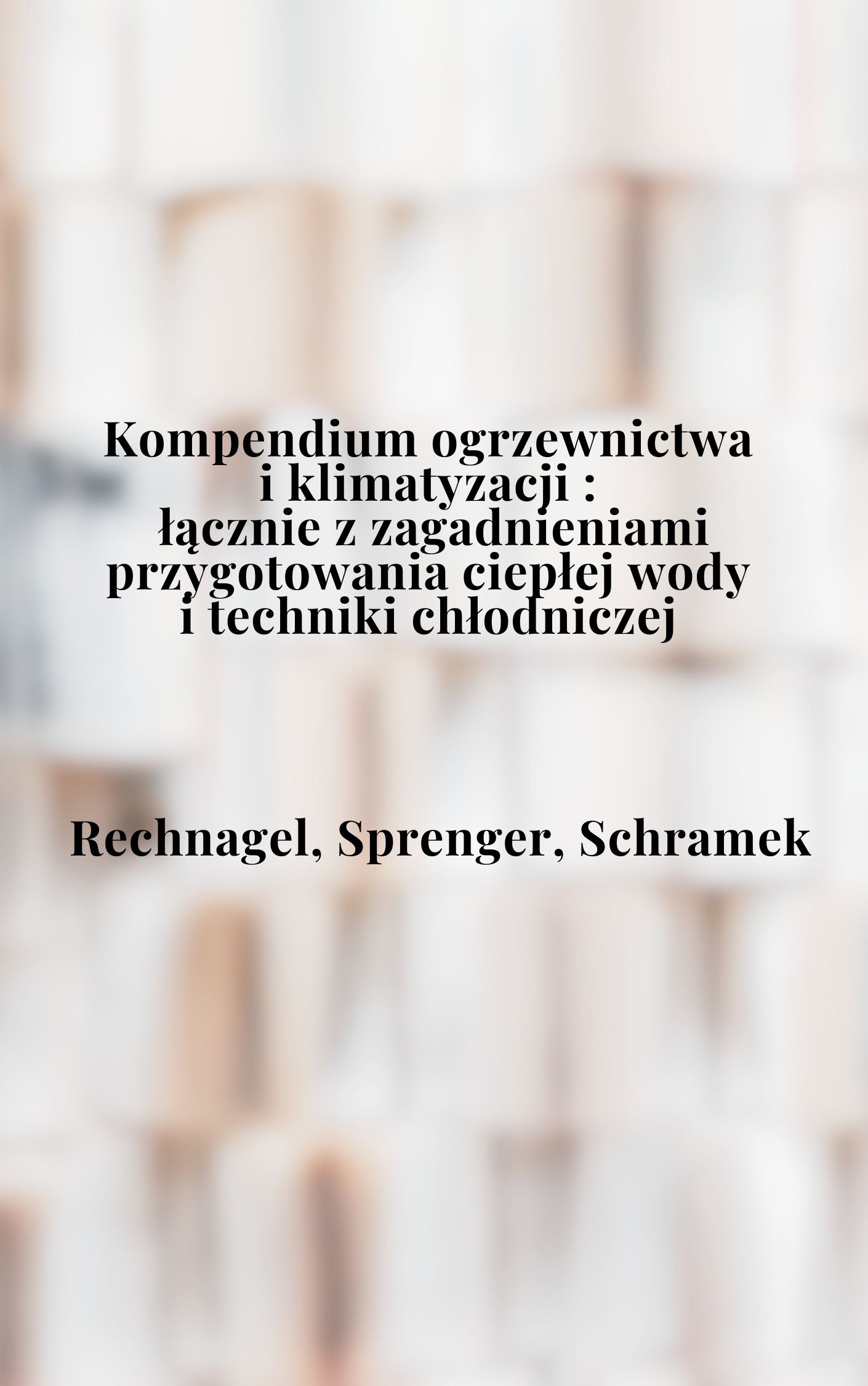 1. Podstawy Podstawowe pojęcia metrologii Podstawowe wiadomości z zakresu higieny Podstawy techniki cieplnej Podstawy hydrauliki Podstawy akustyczne Podstawy miernictwa Podstawy techniki regulacji Podstawy gospodarki energetycznej Podstawy ochrony środowiska i ochrony powietrza Podstawy ochrony przed korozją i kamieniem kotłowym Podstawy Facility Management - planowanie, wykonanie i użytkowanie Podstawy fizyki budowli dla ochrony cieplnej 2. Ogrzewanie Systemy ogrzewania Elementy składowe instalazji grzewczych Obliczenia i projektowania instalacji grzewczych Wykonanie ogrzewania w różnych rodzajach budynków Koszty ogrzewania i ciepłej wody 3. Wentylacja i klimatyzacja Podstawy techniki uzdatniania powietrza Systemy wentylacyjne i klimatyzacyjne Elementy składowe systemów wentylacyjno-klimatyzacyjnych Urządzenia wentylacyjne/klimatyzacyjne Obliczenia w systemach wentylacji i klimatyzacji Rozwiązania wentylacji w różnych budynkach i pomieszczeniach Przemysłowe odciągi miejscowe 4. Zaopatrzenie w ciepłą wodę użytkową Systemy podgrzewania wody Elementy instalacji cieplnej wody użytkowej Obliczenia instalacji cieplnej wody użytkowej 5. Technika chłodnicza Czynniki robocze chłodziarek Elementy składowe instalacji chłodniczych Budowa urządzeń chłodniczych Regulacje prawne Normy polskie, europejskie i międzynarodowe Zarządzenia i wytyczne różnych instytucji Książki i czasopisma z zakresu techniki grzewczej i kliamtyzacyjnej Stowarzyszenia, zrzeszenia, szkoły i instytuty Jednostki i symbole Tabele przeliczeniowe 7. Odnawialne źródła energii Kolektory słoneczne Pompy ciepła Kotły spalające i zgazowujące drewno.