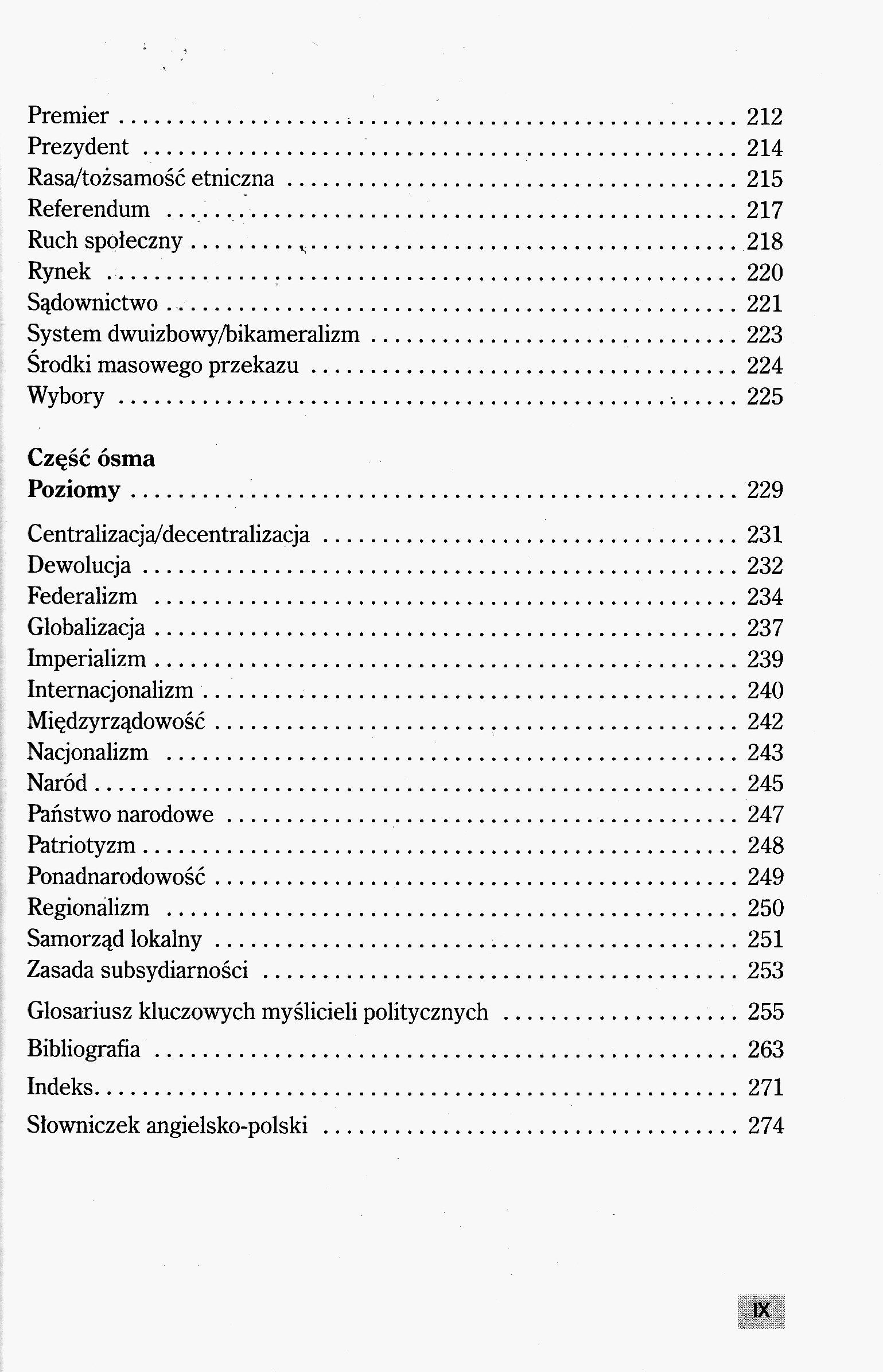 Zaw. angielsko-polski słowniczek terminów z zakresu politologii.