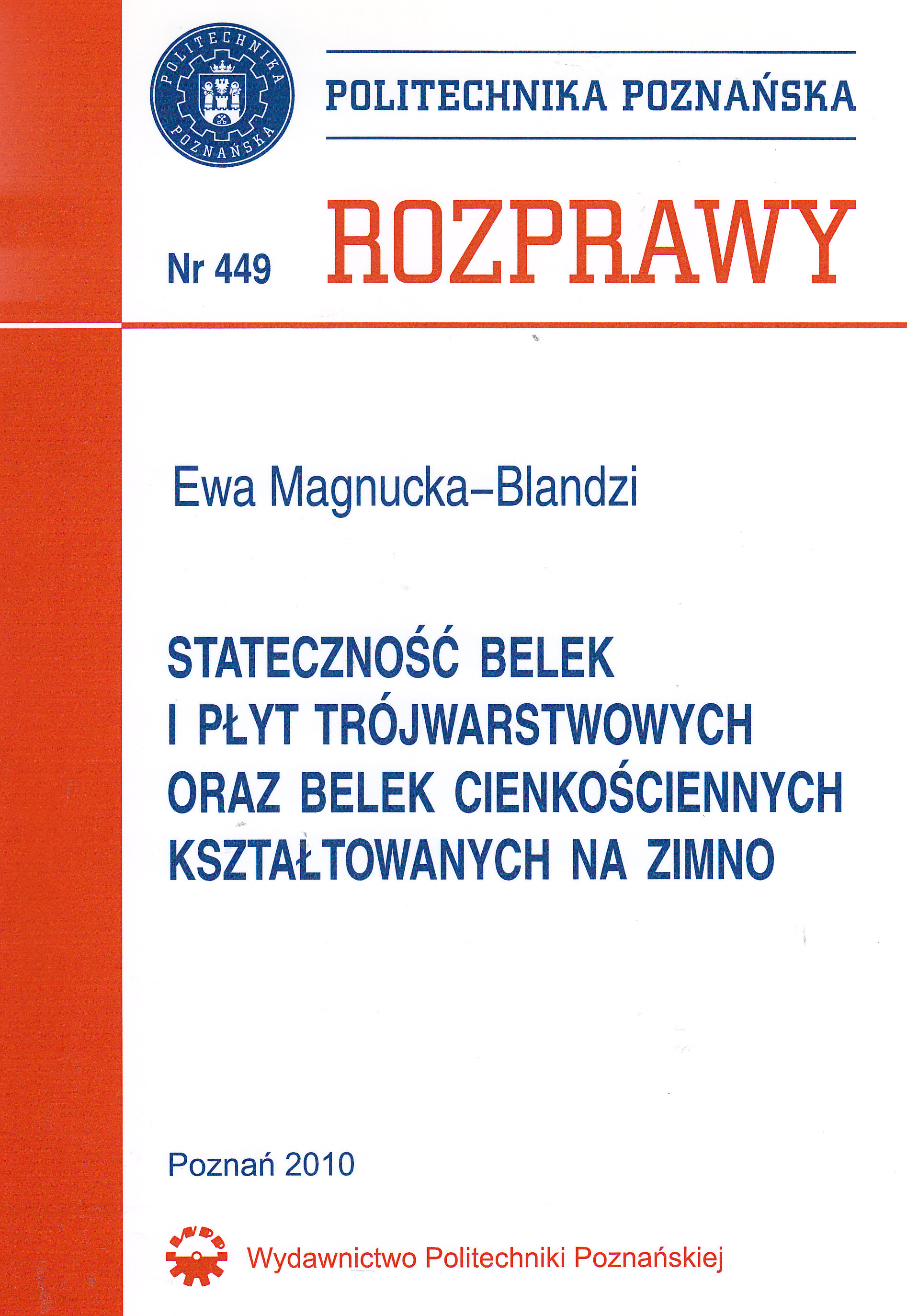 Belki, płyty warstwowe z rdzeniem metalowym Belki cienkościenne kształtowane na zimno Statecznosć belek i płyt trojwarstwowych Belki trójwarstwowe Płyty kołowe Płyty prostokątne Stateczność ceowych belek cienkościennych.