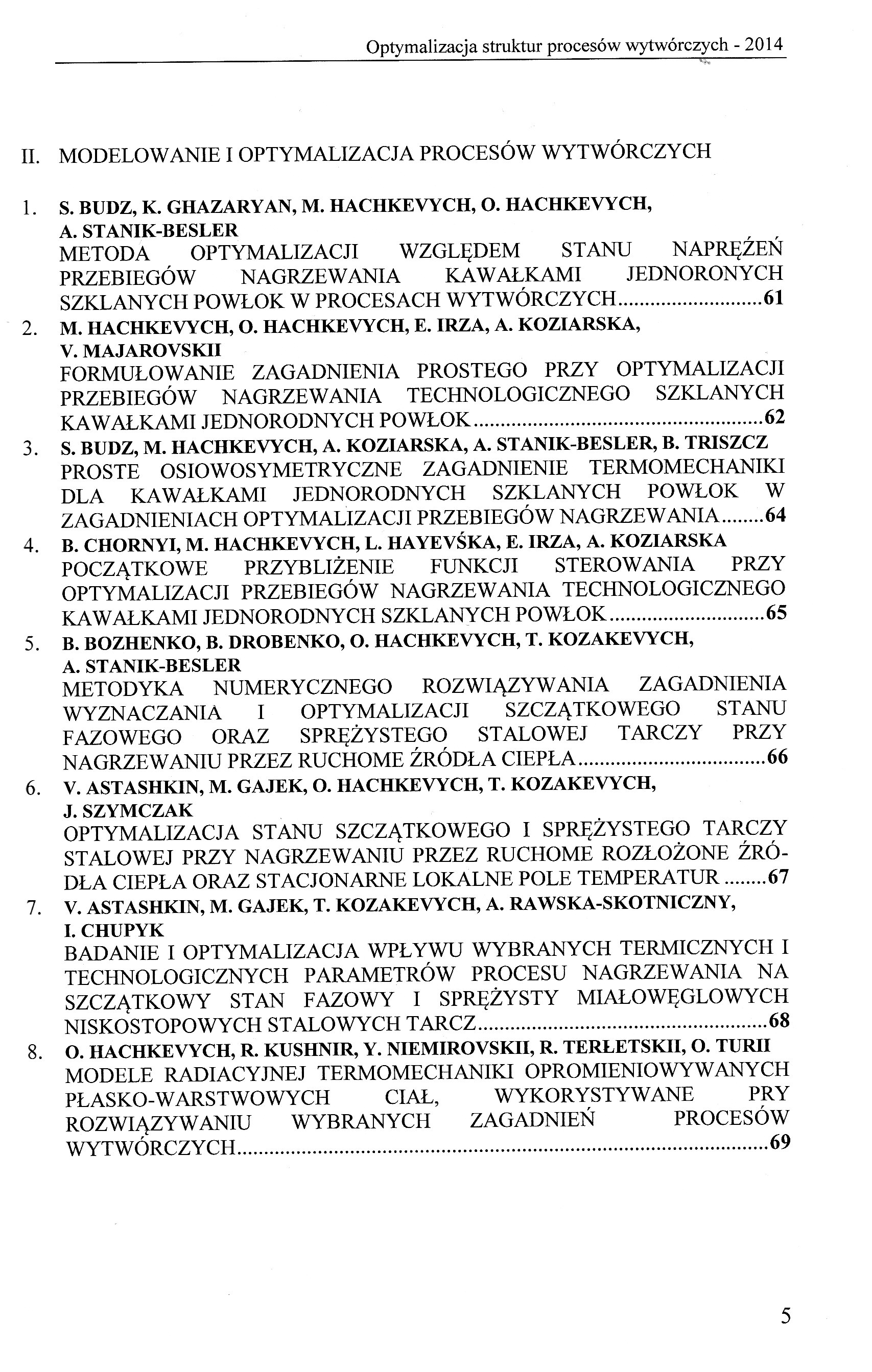 Tyt. okł.: Optimization of the structures of manufacturing processes - 2014 : International Scientific Seminar : abstracts