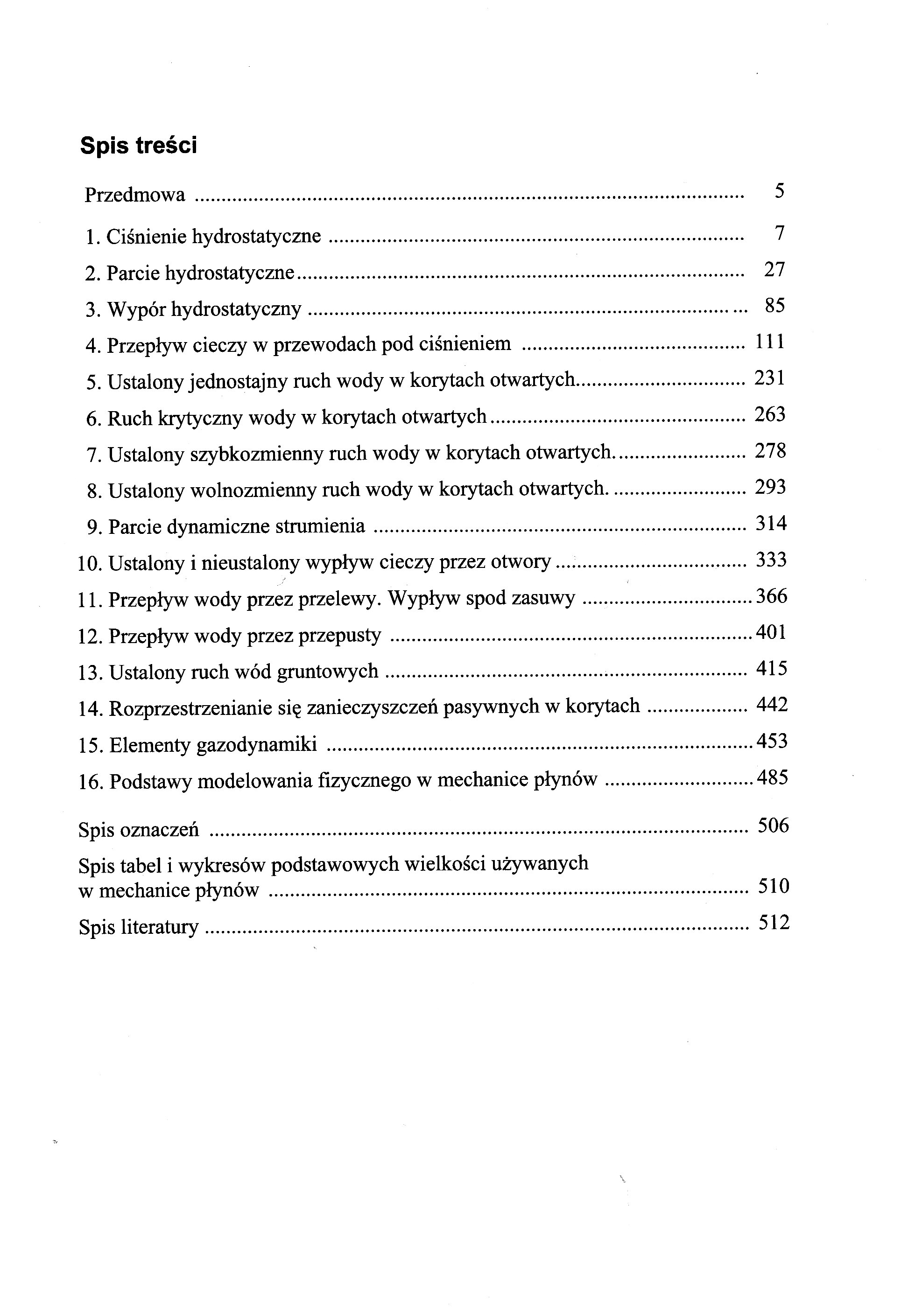 Ciśnienie hydrostatyczne Parcie hydrostatyczne Wypór hydrostatyczny Przepływ cieczy w przewodach pod ciśnieniem Ustalony jednostajny ruch wody w korytach otwartych Ruch krytyczny wody w korytach otwartych Ustalony szybkozmienny ruch wody w korytach otwartych Ustalony wolnozmienny ruch wody w korytach otwartych Parcie dynamiczne strumienia Ustalony i nieustalony wypływ cieczy przez otwory Przepływ wody przez przelewy. Wypływ spod zasuwy Przepływ wody przez przepusty Ustalony ruch wód gruntowych Rozprzestrzenianie się zanieczyszczeń pasywnych w korytach Elementy gazodynamiki Podstawy modelowania fizycznego w mechanice płynów