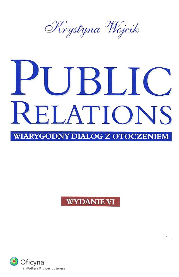 Public relations : wiarygodny dialog z otoczeniem / Krystyna Wojcik. - Wydanie VI. - Warszawa : Wolters Kluwer Polska, 2015. - 972 stron : ilustracje ; 25 cm.